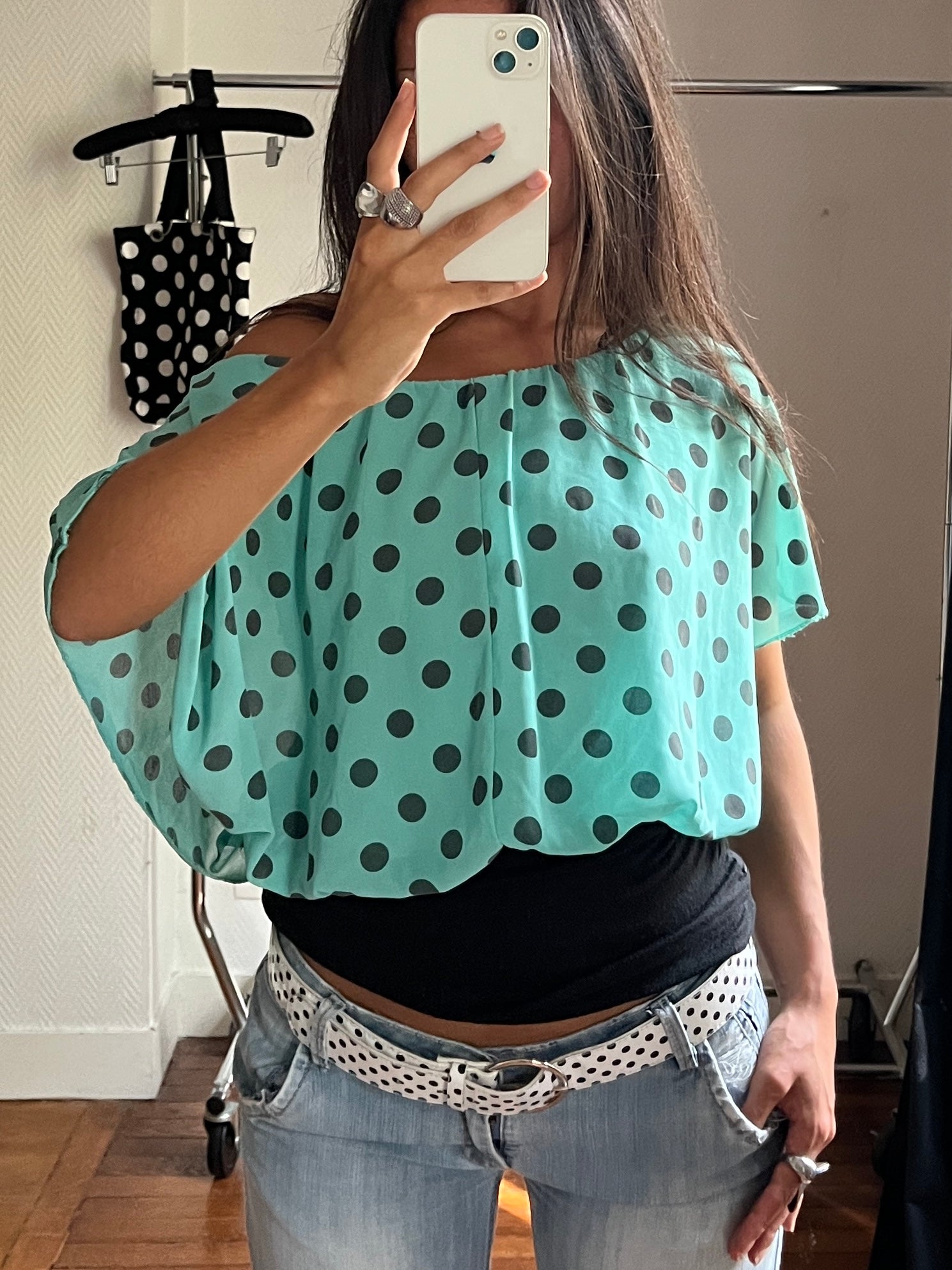 Vintage bimaterial polka dot top
