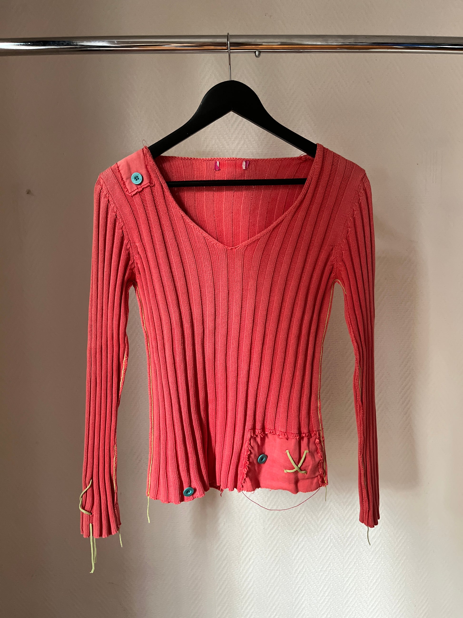 Vintage V neck knitted pull over with doll couture details
